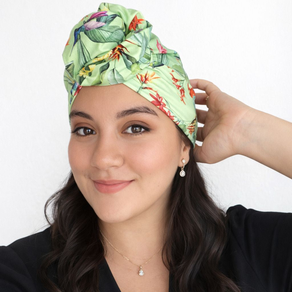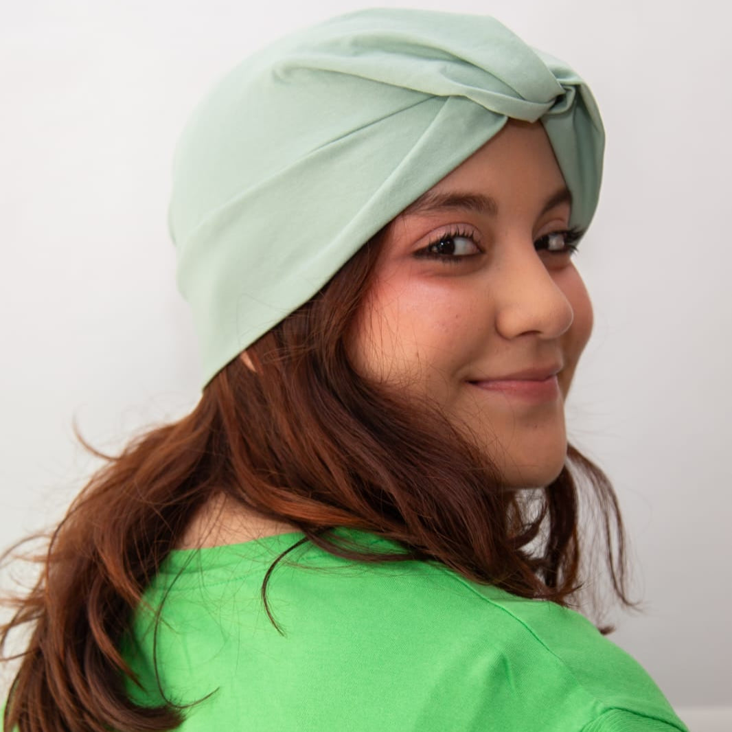 Luce nuestros turbantes oncologicos, telas delicadas y naturales para tu cuero cabelludo sencible. 👑